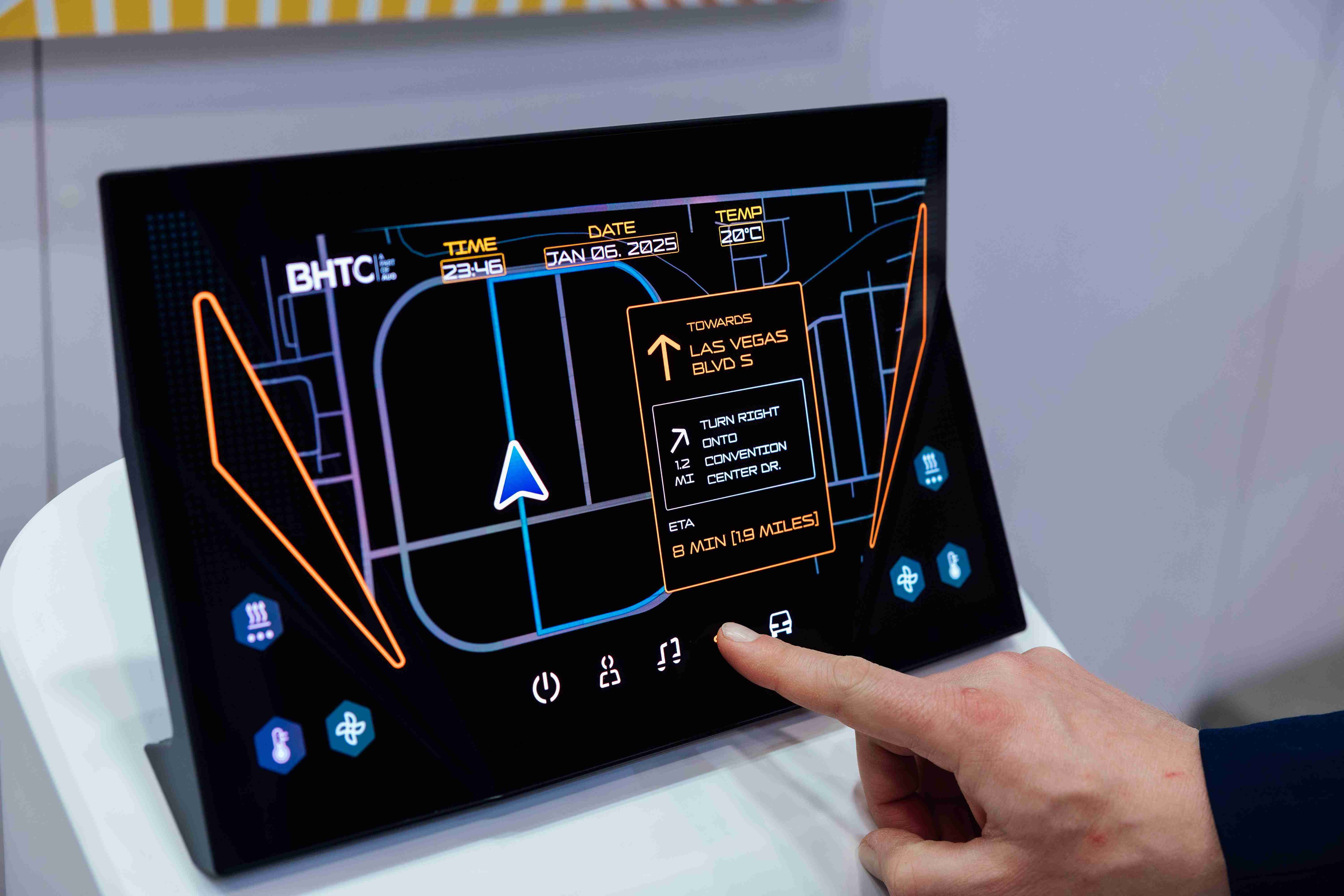 Micro LED可折迭触控显示器(Haptifold Display)结合BHTC多年HMI设计经验,,,整合中控台和温度控制功能,,,以优美的曲面和独特的外型助力车内设计美学,,,,在辅以触控回馈下,,,,为驾驶带来更直觉的使用体验。。