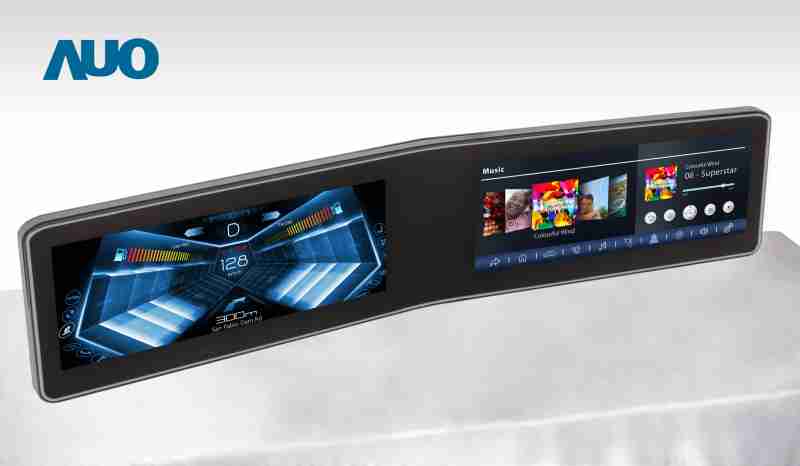 PG国际 V 型曲面驾驶舱显示器,,,,采全贴合拼接仪表板及中控台显示屏 |