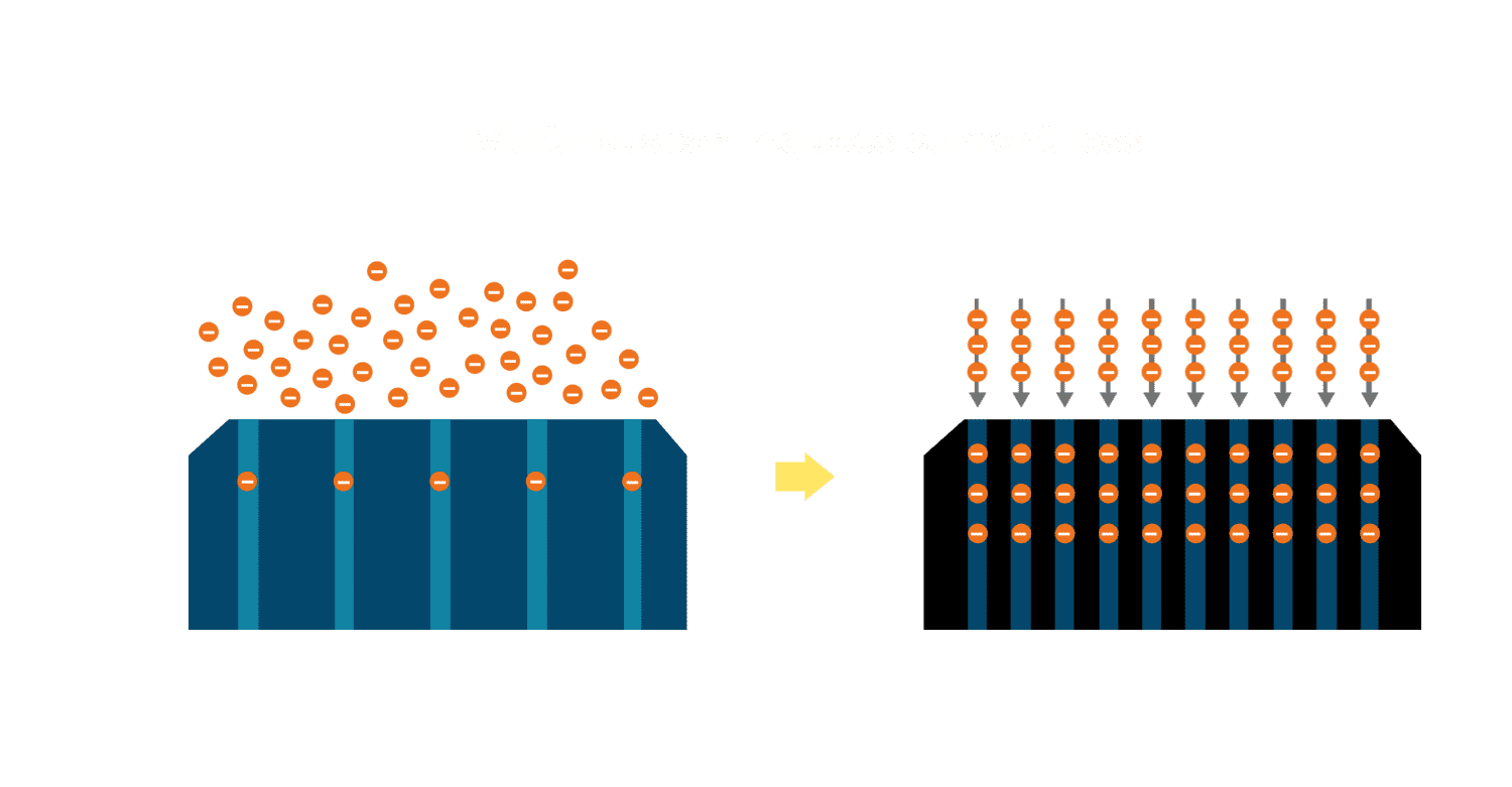 - 电池使用多条铜导线 (Copper wire) 于电池片上形成较短的电流路径,,,,提高电流收集效率,,采用圆形设计的铜导线较传统扁平式的铜焊带 (Ribbon),,,,可增加入射至电池的光线量。。。