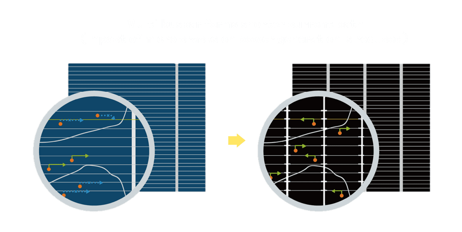 优化的太阳能电池结构设计,,,不仅提高电流收集效率,,,,降低电池隐裂,,,,使太阳能模组长期维持稳定的输出效能,,,,提高营运效益。。。