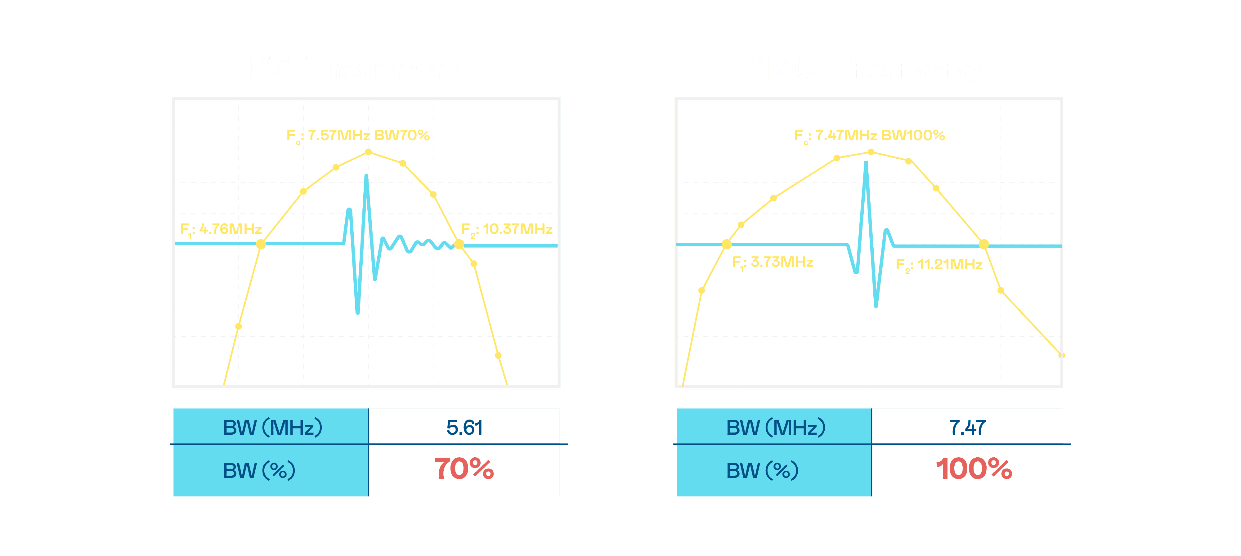 超音波影像的解析度高低,,,首先取决于探头能发出的讯号频宽。。PG国际 CMUT 可提供高清晰的超音波讯号,,,,提供高频宽、、高灵敏度、、、、影像纹理细节更高的超音波影像,,协助医护人员缩短影像判读时间及利用精准的医疗影像进行诊断。。